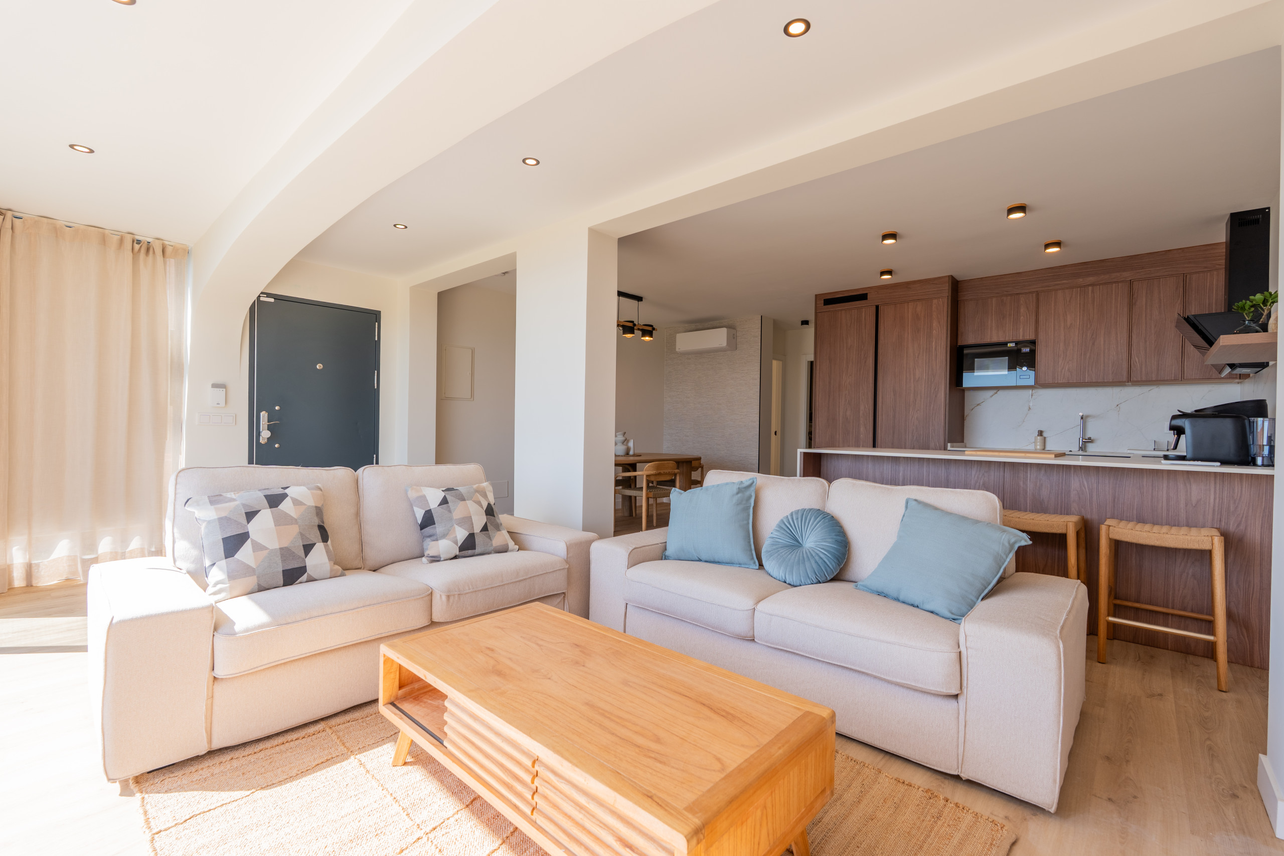 Situated in the charming residential community of Doña María II, this elegant two-bedroom apartment combines stunning Mediterranean sea views with stylish Nordic-inspired interiors, creating the perfect setting for a relaxing holiday on the Costa del Sol.