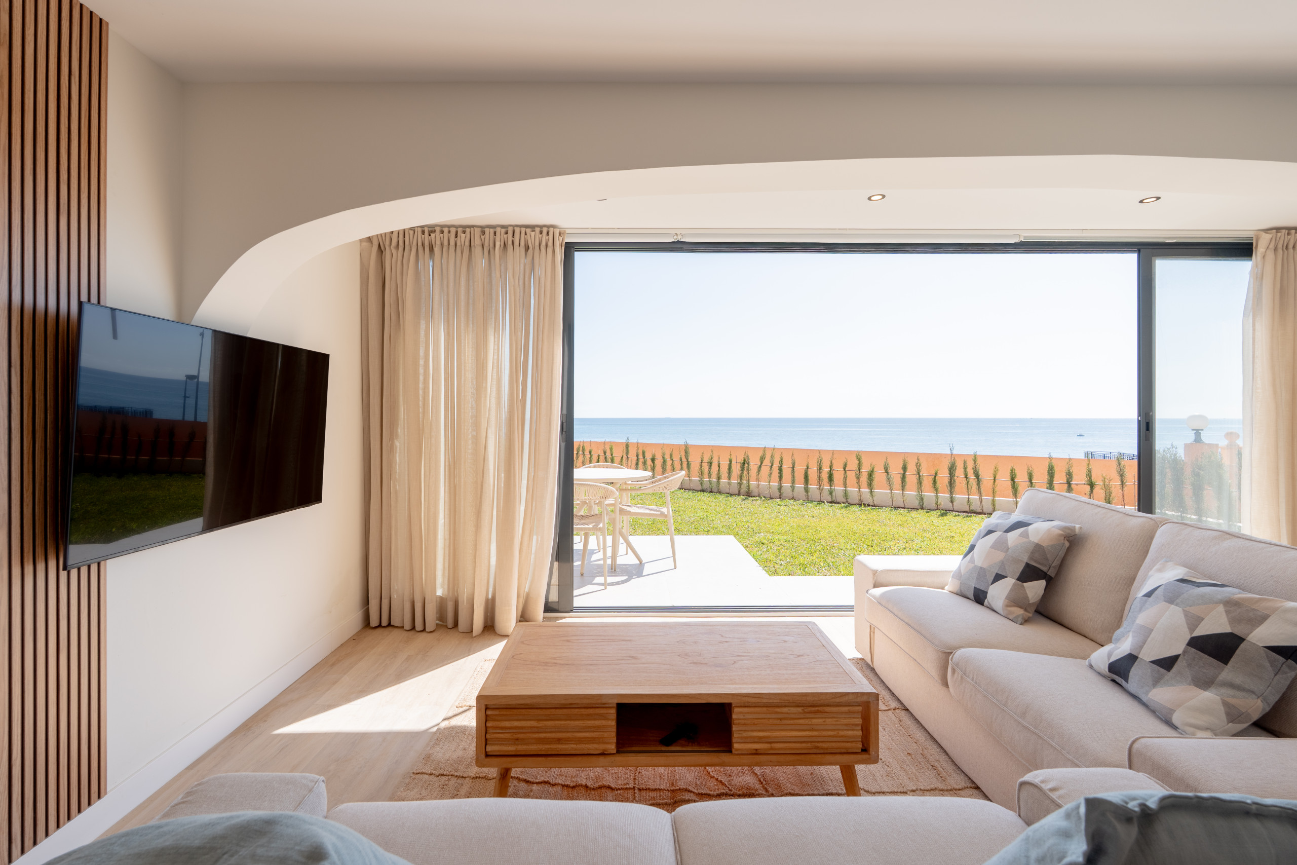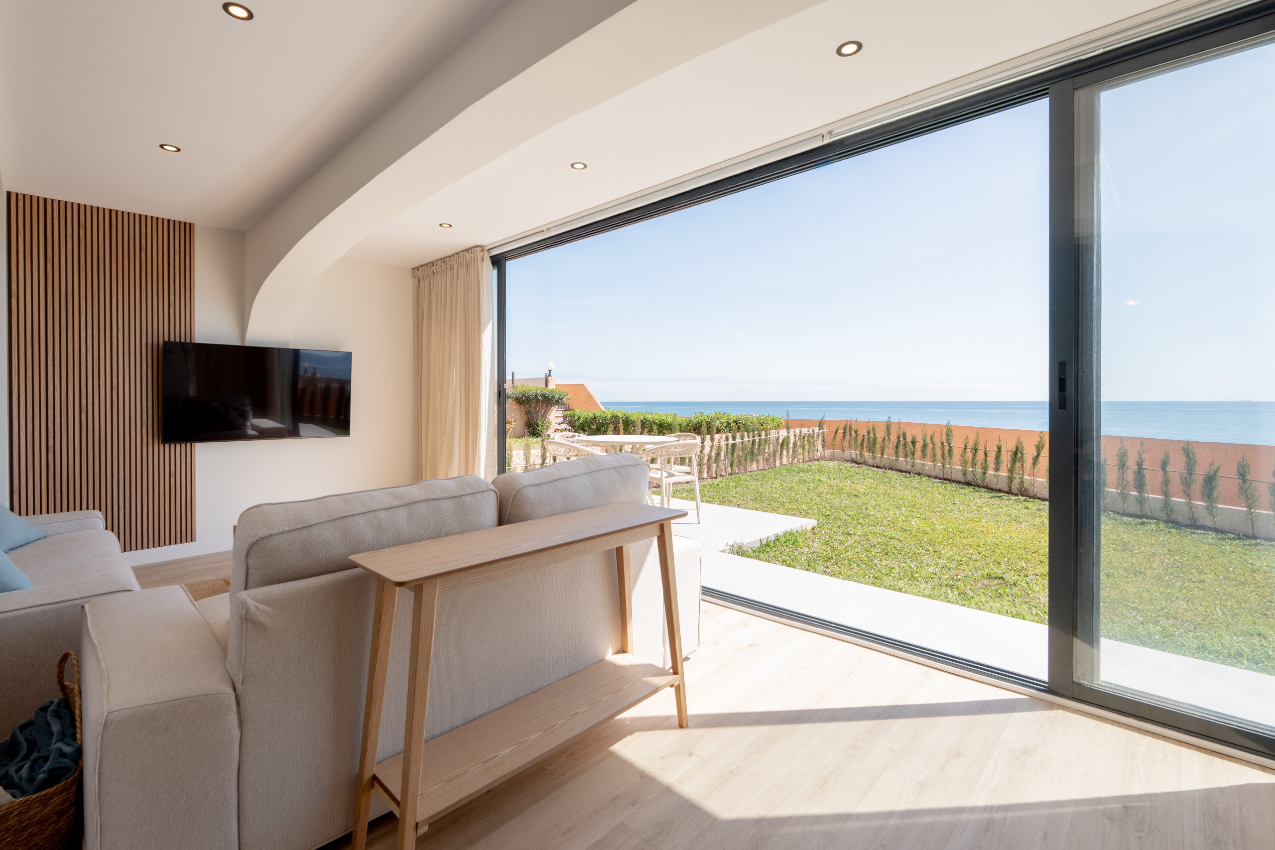 • A comfortable living and dining area with sea views