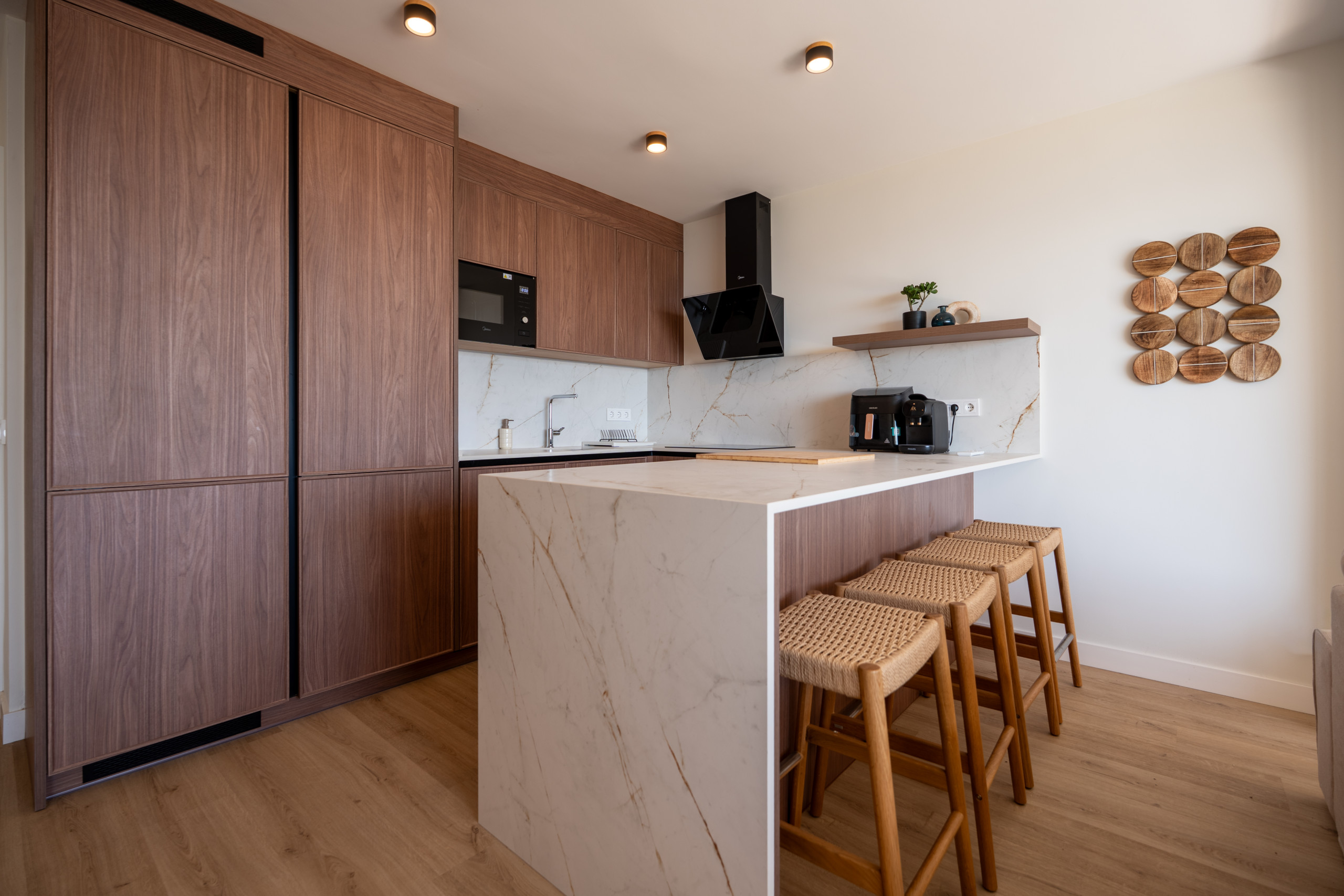 The apartment has been thoughtfully designed to create a bright, calm and elegant atmosphere, inspired by modern Scandinavian interior design.