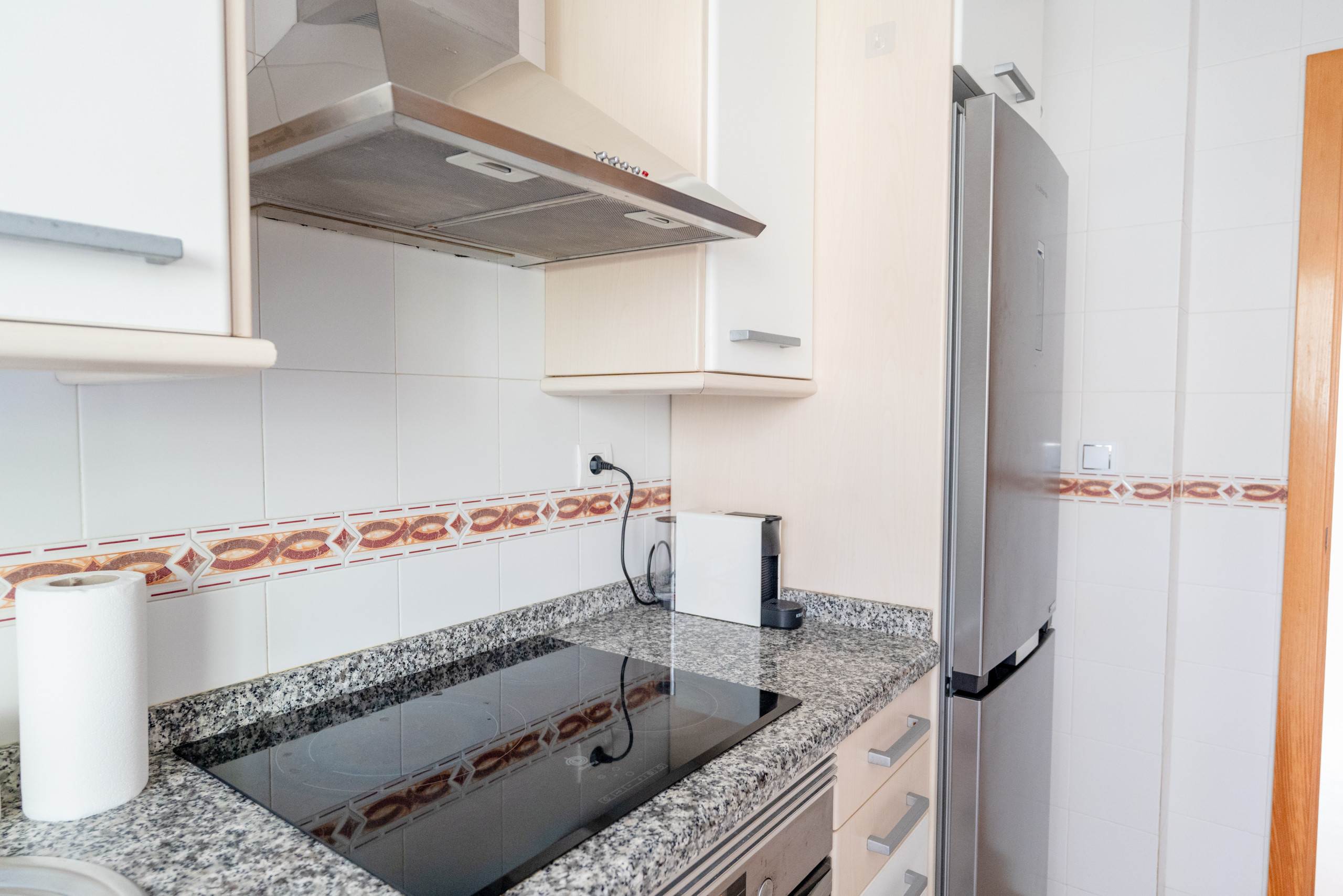 The independent kitchen, with a ceramic glass hob, is fully equipped with a refrigerator, freezer, oven, microwave, dishwasher, kitchen utensils, dishes, coffee machine, and toaster, making it easy to prepare meals just like at home.